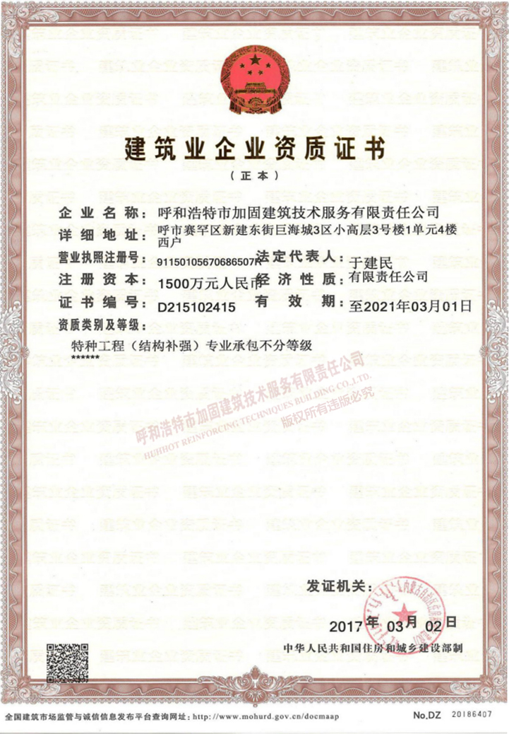 建筑業企業資質證書正本