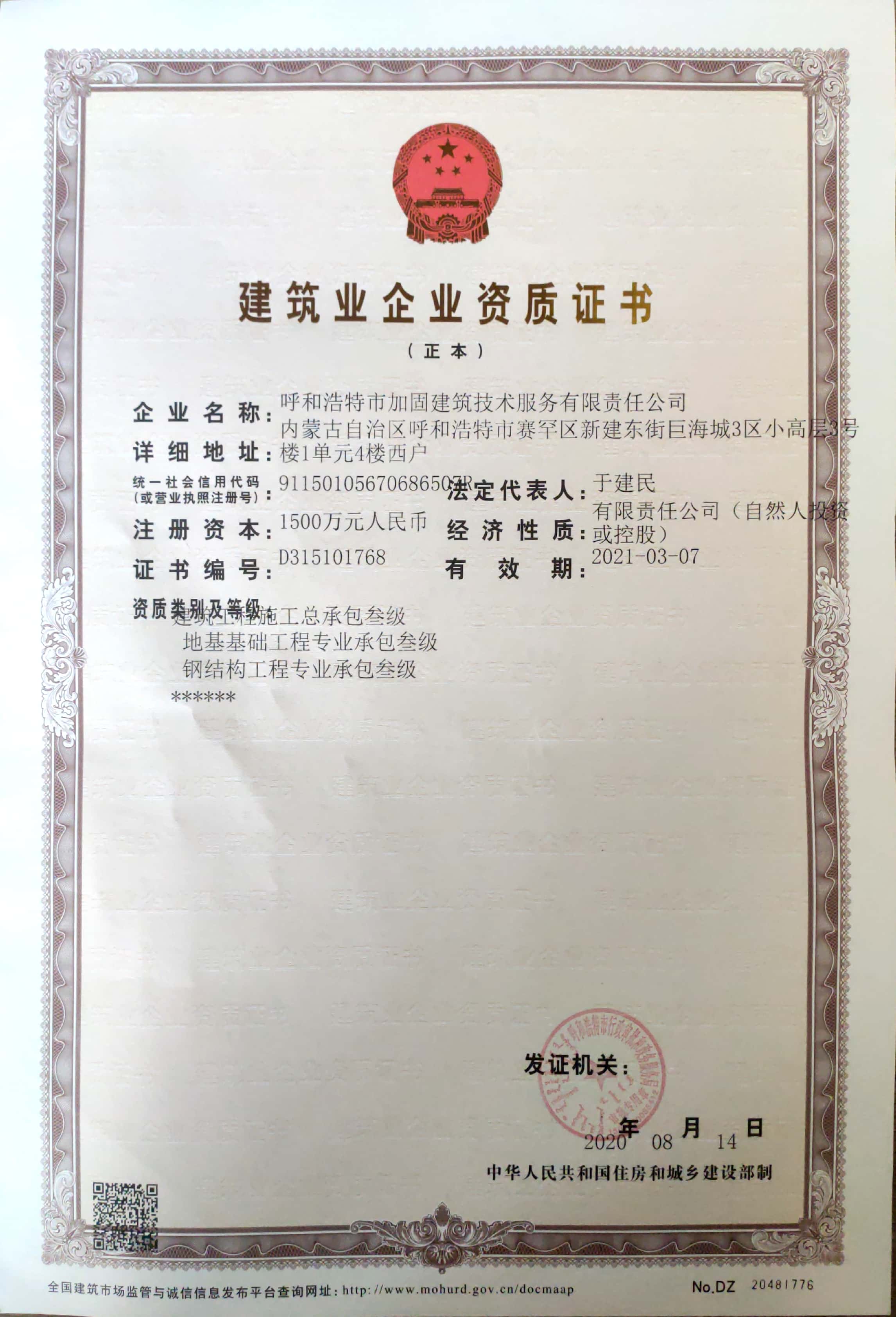 熱烈慶祝我公司新增建筑總承包叁級(jí)資質(zhì)。這是公司在施工資質(zhì)上的一項(xiàng)重大突破,對(duì)于公司轉(zhuǎn)型升級(jí)、拓寬經(jīng)營(yíng)領(lǐng)域,提升企業(yè)競(jìng)爭(zhēng)力具有重要意義。至此,公司擁有建筑總承包叁級(jí)、特種工程(結(jié)構(gòu)補(bǔ)強(qiáng))專(zhuān)業(yè)不分等級(jí)、地基基礎(chǔ)工程專(zhuān)業(yè)承包叁級(jí)、鋼結(jié)構(gòu)工程專(zhuān)業(yè)承包叁級(jí),四個(gè)施工資質(zhì),涉足四個(gè)行業(yè)方向。固之堅(jiān),譽(yù)可信。歡迎各界人士及新老客戶(hù)來(lái)我公司參觀(guān)考察、洽談業(yè)務(wù),期待著與您的交流合作。